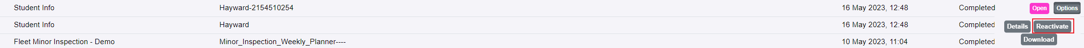 The formShare owner is made aware of the missing information or errors and needs the client to made amendments to form. The formShare owner will need to login to home.insdi.com and Reactivate the form (by selecting the 'Options' button and selecting 'Reactivate' from the dropdown. The formShare owner will now be able to either make the changes themselves or reshare the form with client for the client to make the necessary changes.